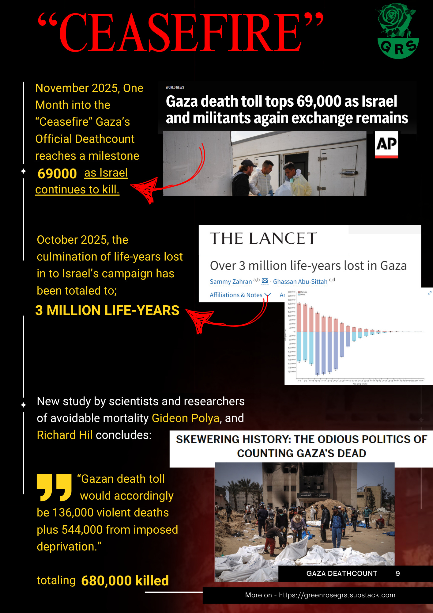 The Ceasefire has not brought a halt to the loss of life, in fact it brought a new milestone to the official count 69,000, as Israel continues to kill, kill, kill.